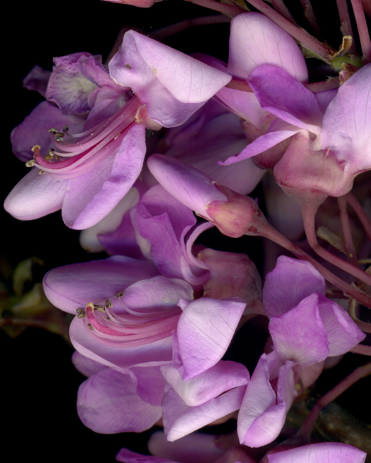 Cet inventaire est à la fois sensible et scientifique. Scientifique car il se présente comme une planche botanique à partir de laquelle nous pouvons décrire le végétal. Sensible parce qu’il déborde d’une finalité uniquement descriptive pour émaner des rapports esthétiques et sensibles. Sur fond noir, tel un portrait de studio, les détails invisibles à l’œil nu apparaissent à ce format, on «pénètre» ainsi dans la fleur comme le font les abeilles. Nous sommes presque à l’échelle de l’abeille.
