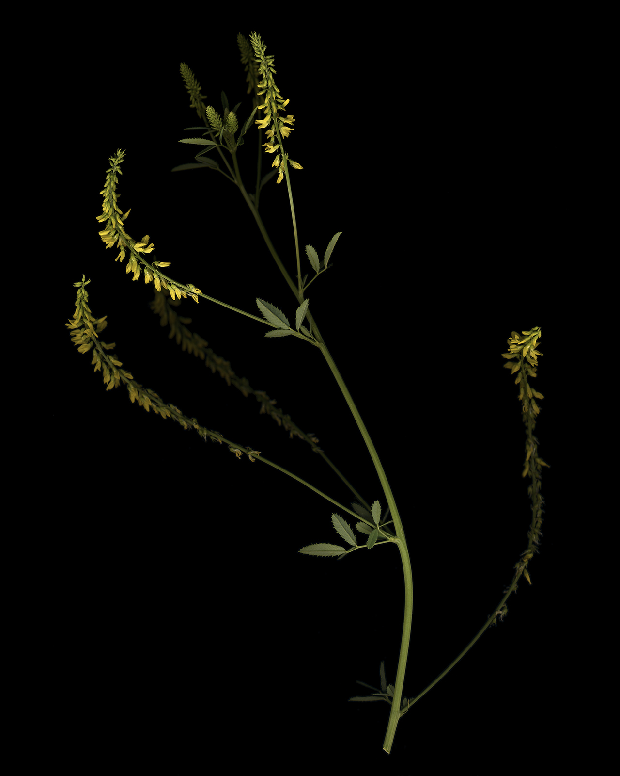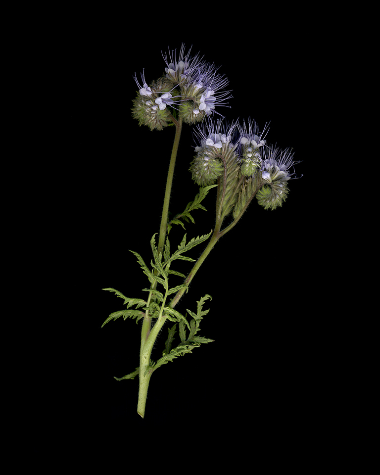 Je réalise de cette manière un herbier qui correspond au paysage des abeilles : le paysage mellifère. Je coupe la hampe florale du végétal pour en réaliser une photographie de grand format.